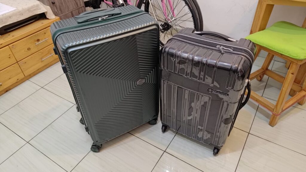Terus kemarin saya dapat koper besar dari tetangga lho hehehe. Jadi tetangga saya yang di depan itu kerja di travel agent. Terus mereka tahu kalo saya mau ke Jepang. Mungkin mereka tahu dari istri saya. Nah kebetulan pas lagi ngobrol, mereka liat koper item saya dan bilang kalo untuk ukuran masa tinggal 2 bulan, koper saya kurang besar. Terus mereka bilang “Nanti aku bawain yang besar ya” gitu. Saya pikir bercanda, eh besok paginya beneran dibawain lho. Koper dari tetangga saya ukurannya lebih besar. Kan mereka kerja di travel agent, jadi mungkin punya banyak stok koper kali ya.