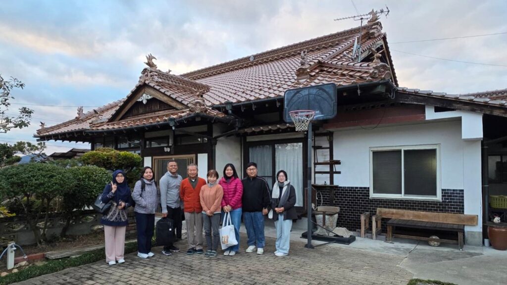Terus minggu kemarin saya dan peserta pelatihan yang lain ada kesempatan kunjungi rumah orang Jepang yang tinggal di Higashi Hiroshima. Rumahnya mungkin bisa dibilang tipikal rumah orang Jepang yang ada di desa. Saya udah kurang lebih 8 tahun tinggal di Jepang, tapi baru kali ini masuk ke rumah orang Jepang yang ada di desa. Pemilik rumahnya baik banget. Dia bersedia tunjukkin macam-macam ruangan yang ada di rumah itu supaya kami bisa belajar mengenai rumah khas Jepang. Katanya rumah itu dibangun kurang lebih 60 tahun yang lalu. Walaupun udah lumayan lama, tapi hampir nggak ada bagian rumah yang kelihatan rusak. Keren banget.